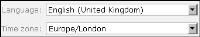 6 Open the Information Console web application. The login page for the custom application appears. A login page with default locale set to en_GB, and the default time zone set to Europe/London, appears as shown in