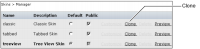 2 In the skin manager, choose Clone on an existing skin, as indicated in