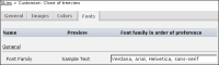 Figure 2‑21. On Name, select General. Font Family appears. Specify one or more font families to use. Actuate Information Console uses the first font in the list found on the machine where Actuate Information Console is deployed.