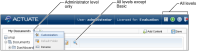 Actuate Information Console provides five functionality levels by default. Four functionality definitions specify a corresponding Encyclopedia volume security role that provides access to that functionality level.