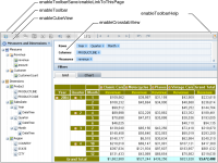 Show or hide Data Analyzer viewer features with the actuate.xtabanalyzer.UIOptions class. The UIOptions class includes functions that support the ability to hide or show different features of the viewer.
