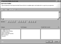 Figure 11‑2, is a tool you use to create, modify, and view expressions. It provides a list of the objects, functions, and operators that you can include in expressions. The expression builder is particularly useful when you are learning how to write expressions in JavaScript and discovering which BIRT and JavaScript functions are available.
