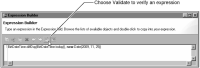 When you finish creating an expression in the expression builder, choose Validate, as shown in