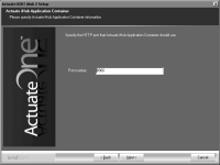 2 In Actuate iHub Application Container, type the port number that the iHub Application Container uses, or accept the default port number, 8900, as shown in