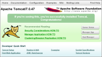 Having a manager’s account available, first open the Tomcat main page, which for a typical Apache Tomcat installation is http://localhost:8080, as shown in Figure 5‑1.