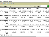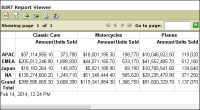 A cross tab can display any number of measures. For example, a cross tab that displays aggregate data by product line and territory can show the sales total in dollars, the number of units sold, the number of customers, and so on. Figure 22‑41 shows a cross tab that displays two measures, sales total amounts and total units sold.