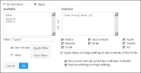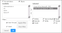 You can also filter the list of users or user groups in Available. For example, to view only the user groups in the Available list that are sales related, type *sales* in Filter, and choose Apply Filter. Only the user group names containing the term sales appear in Available, as shown in Figure 2‑24. Choose Clear Filter to show all Available list entries.