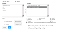 3 In Selected, select a user or multiple users, then select access privileges to grant them from the list below Selected.