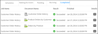 Event Status | Status of the state between Visualization Platform and the event that triggers job execution. Possible states are: Visualization Platform did not start monitoring the system for the event. While monitoring the system for event criteria that triggers job execution, Visualization Platform has not found matching criteria. Visualization Platform found matching event criteria and executed the job. Visualization Platform did not find matching event criteria within the polling interval or a user canceled the job. |