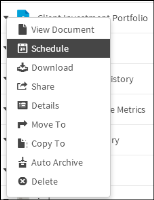 1 Navigate to your home folder. From the menu icon next to the design or document you need to schedule, choose Schedule, as shown in Figure 3‑23.