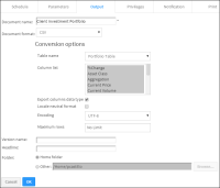 In this task you specify options to schedule the document in CSV output format.