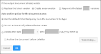 Figure 3‑25 Setting version and archiving options for the output document