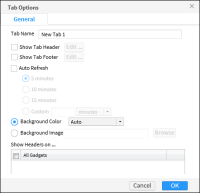 Show Tab Header, to include HTML text at the top of the dashboard page