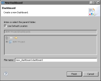If you want to use a different project or folder to store the dashboard file, remove the selection Use Default Location to access the tree view of the available folders.