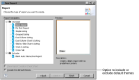 When creating a new report using the New Report wizard, remove the selection for Include the default themes.