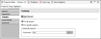 Use the Visibility property to hide a column based on the output format or on a specific condition. For example, you can hide a column in all formats except PDF, or hide a column if it contains no values. The Visibility property is available under Properties in the Property Editor, as shown in