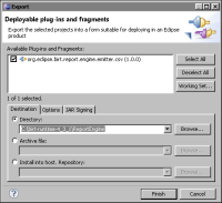 The org.eclipse.birt.report.engine.emitter.csv JAR file deploys to the birt‑runtime-4_3_1\ReportEngine\plugins directory.